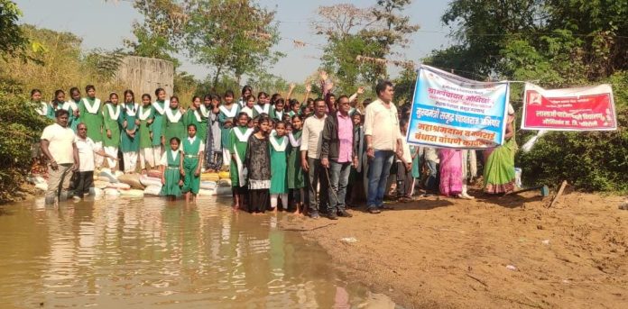 रानखेडा येथे महाश्रमदानातून उभारला वनराई बंधारा