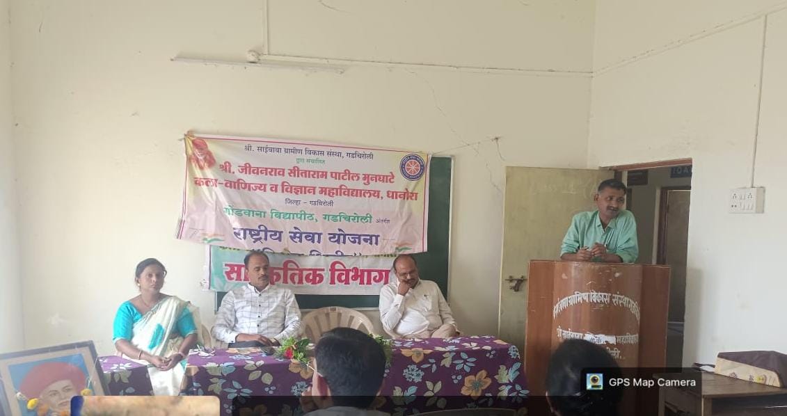 महाविद्यालयातील राष्ट्रीय सेवा योजना (NSS) व सांस्कृतिक विभागाच्या संयुक्त विद्यमाने आयोजित या कार्यक्रमास प्रमुख वक्ते म्हणून डॉ. पंढरी वाघ उपस्थित होते. तसेच डॉ. दामोधर झाडे, रासेयो विभाग प्रमुख डॉ. प्रियंका पठाडे आणि अध्यक्षस्थानी डॉ. राजू किरमीरे यांची उपस्थिती लाभली.