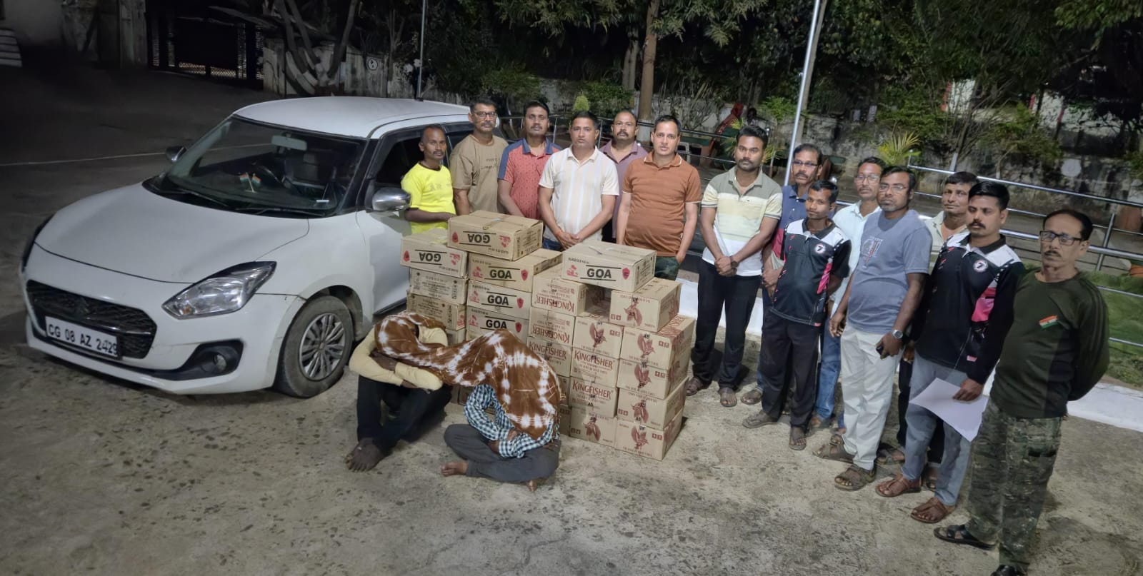पोलिसांना मिळालेल्या गोपनीय माहितीनुसार, दोन पंचांच्या उपस्थितीत सीजी-०८ एझेड-२४२९ क्रमांकाच्या पांढऱ्या रंगाच्या स्विफ्ट कारची झडती घेण्यात आली. वाहनातून १८० मिली क्षमतेच्या ‘गोवा व्हिस्की’च्या ७०० सीलबंद बाटल्या (अंदाजे किंमत १,४०,००० रुपये) तसेच ५०० मिली क्षमतेच्या ‘किंगफिशर’ कंपनीच्या ३६० बिअर कॅन्स (अंदाजे किंमत १,००,८०० रुपये) असा एकूण २,४०,८०० रुपयांचा अवैध मद्यसाठा आढळून आला. याशिवाय सुमारे ३,५०,००० रुपये किंमतीचे वाहन जप्त करण्यात आले आहे.