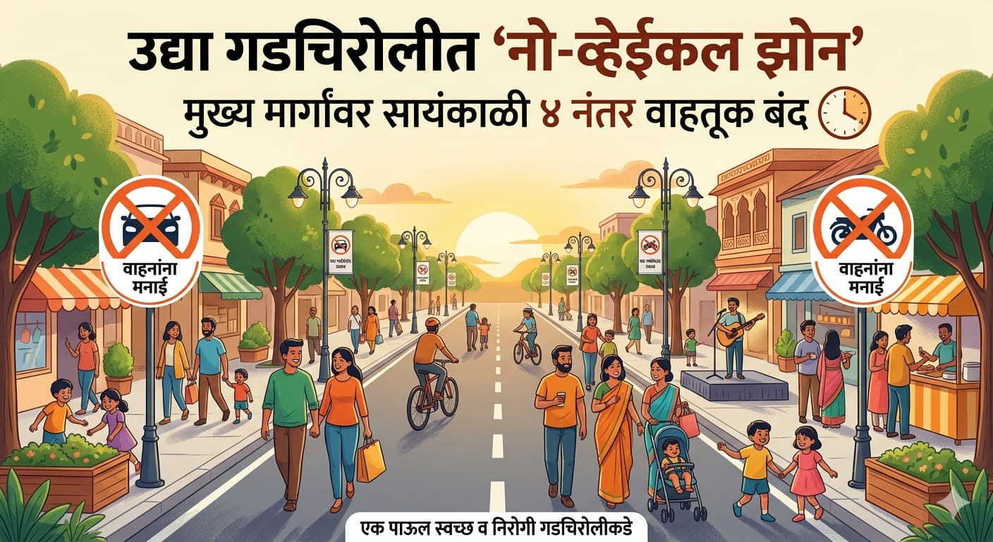 उद्या गडचिरोलीत ‘नो-व्हेईकल झोन’ : मुख्य मार्गांवर सायंकाळी ४ नंतर वाहतूक बंद