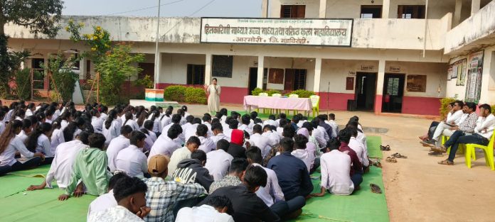 आरमोरी दि. २७ : चातगाव येथील सर्च फाउंडेशनच्या निर्माण उपक्रमाअंतर्गत हितकारिणी उच्च माध्यमिक विद्यालय, आरमोरी येथे ‘युवांचा स्वयंविकास’ या विषयावर आधारित एकदिवसीय शिबिराचे आयोजन करण्यात आले. तरुणाईला व्यसनमुक्त जीवनाची दिशा देणे, जागरूकता निर्माण करणे आणि स्व-विकासाची गरज अधोरेखित करणे हा या शिबिराचा मुख्य उद्देश होता.