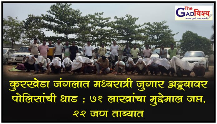 कुरखेडा जंगलात मध्यरात्री जुगार अड्ड्यावर पोलिसांची धाड ; ७१ लाखांचा मुद्देमाल जप्त, २२ जण ताब्यात