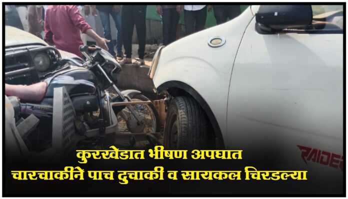 कुरखेडात भीषण अपघात : चारचाकीने पाच दुचाकी व सायकल चिरडल्या