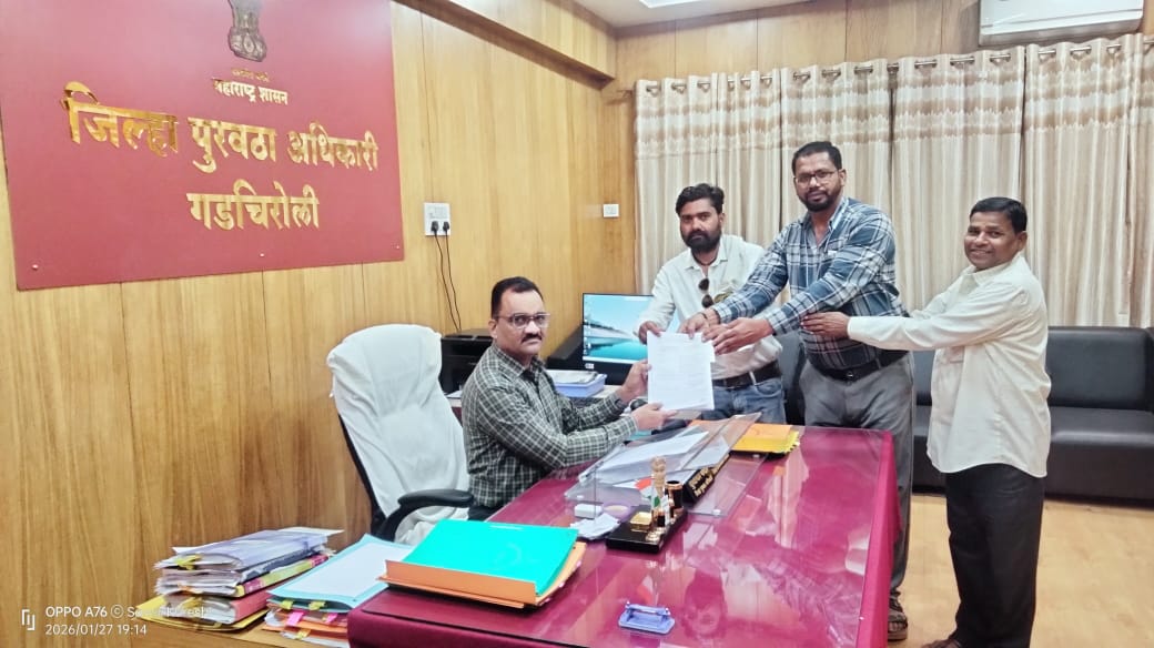 ता. प्र/ धानोरा, दि. २८ : धानोरा तालुक्यातील स्वस्त धान्य दुकानदार संघटनेच्या वतीनेऑक्टोबर २०२५ ते डिसेंबर २०२५ या तीन महिन्यांचे थकीत कमिशन तातडीने अदा करण्यात यावे, या मागणीसाठी मंगळवार २७ जानेवारी २०२६ रोजी माननीय जिल्हा पुरवठा अधिकारी सुधाकर पवार यांना निवेदन सादर करण्यात आले.