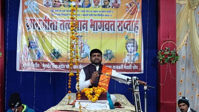 चोप, दि. १७ : आजची युवा पिढी व्यसनांच्या आहारी जात असल्याने समाजासमोर गंभीर आव्हाने उभी ठाकली आहेत. अशा काळात मर्यादा पुरुषोत्तम श्रीरामांचे आदर्श आचरणात आणणे ही काळाची नितांत गरज असल्याचे प्रतिपादन ह.भ.प. शंकर कावळे महाराज यांनी येथे केले.